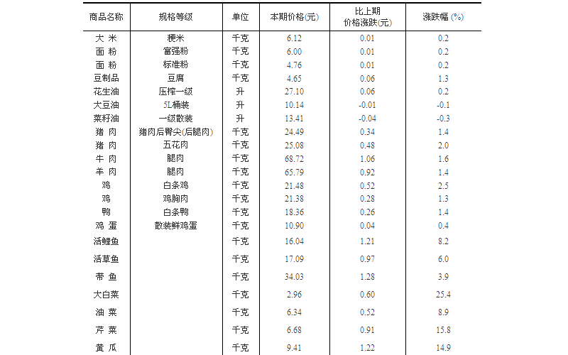 - 50个城市主要食品平均价格变动情况