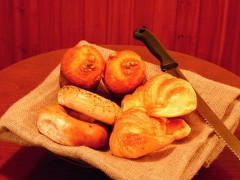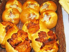 面包,是一种用五谷(一般是麦类)磨粉制作并加热而制成的食品。以小麦粉为主要原料,以酵母、鸡蛋、油脂、果仁等为辅料,加水调制成面团,经过发酵、整型、成型、焙烤、冷却等过程加工而成的焙烤食品。