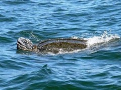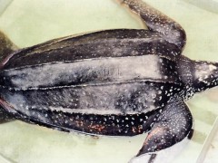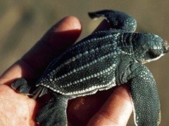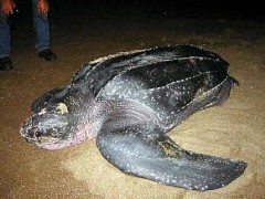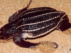 棱皮龟,又称革龟,是龟鳖目中体型最大者,最大体长可达3米,龟壳长2米余;体重可述800-900公斤。棱皮龟主要分布在热带太平洋、大西洋和印度洋,偶尔也见于温带海洋。分布于热带至温带海域、北至西伯利亚海岸以及南中国海、东海、黄海沿海、海南沿岸、台湾沿岸等海域,多栖息于热带海域的中、上层,有时可进入近海和港湾中。据美国杜克大学研究小组发表的海龟调查报告表明,有可能在今后10-20年内灭绝。