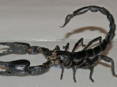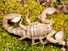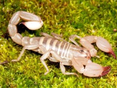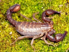 蝎子是蛛形纲动物,蜘蛛亦同属蛛形纲。它们典型的特征包括瘦长的身体、螫、弯曲分段且带有毒刺的尾巴。陆地上最早的的蝎子约出现于四亿三千万年前的希留利亚纪